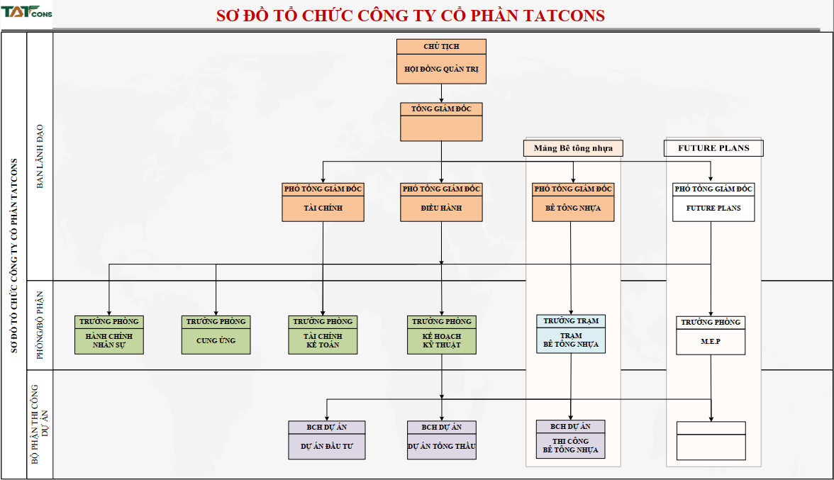 Công ty cổ phần TATcons là công ty thành viên trực thuộc Tổng Công ty Cổ phần Lam Sơn Thái Bình, một doanh nghiệp đa ngành nghề có uy tín hơn 30 năm trong nhiều lĩnh vực: Xuất nhập khẩu lương thực, sản xuất và xuất khẩu thức ăn chăn nuôi, nhà hàng, khách sạn, đầu tư bất động sản, xây dựng dân dụng, hạ tầng giao thông, sản xuất và thi công bê tông Asphalt nóng.