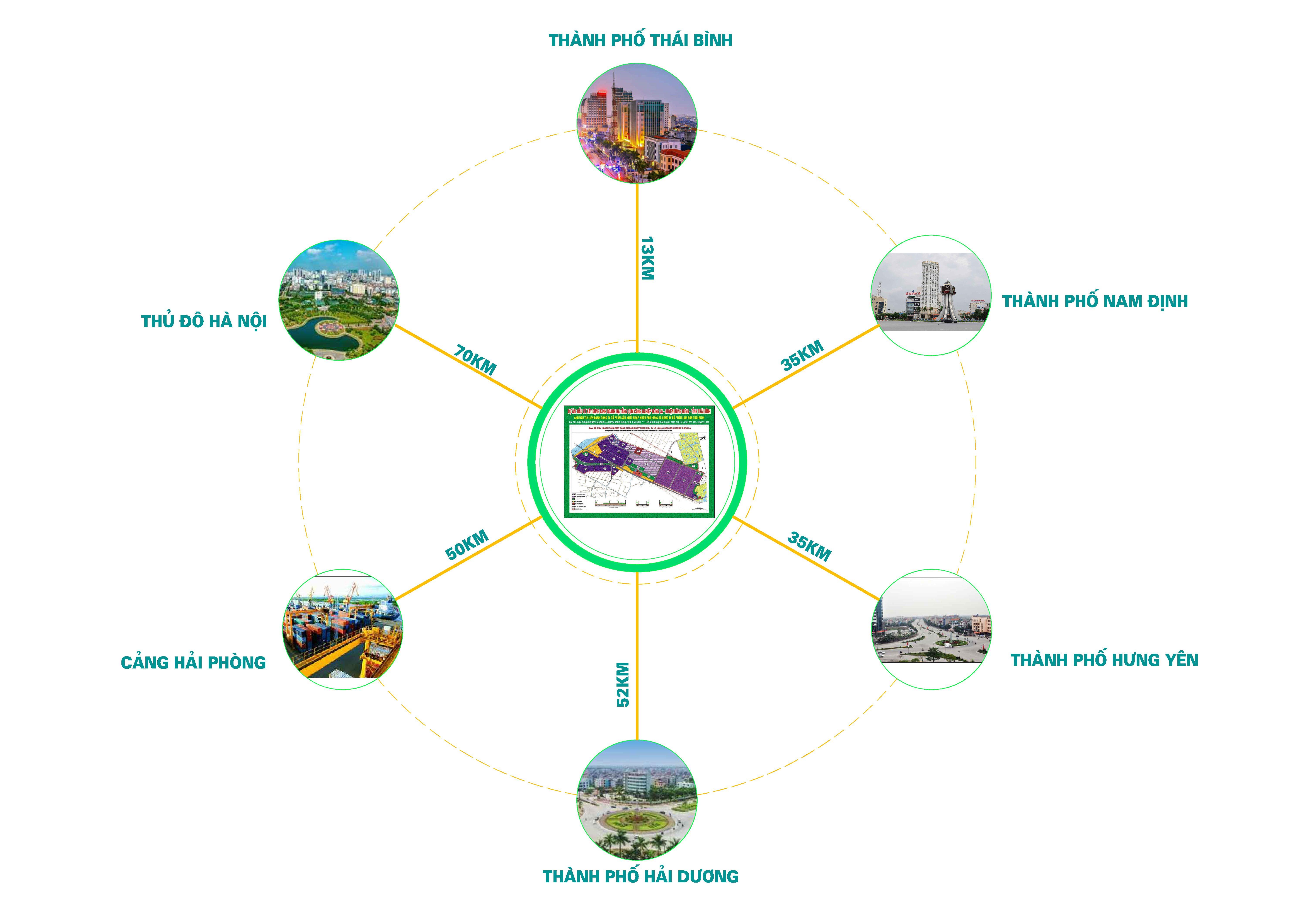 Dự án có vị trí tọa lạc bám mặt QL10, tuyến đường liên tỉnh kết nối Thái Bình đi các tỉnh như: Hải Phòng, Quảng Ninh, Hải Dương, Nam Định…Khu vực xung quanh phát triền với các cụm KCN đang hoạt động, lượng nhân công đông dễ tuyển dụng.