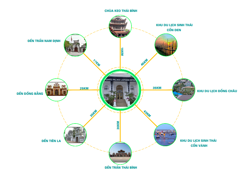Khách sạn White Palace Lam Sơn tọa lạc tại trung tâm thành phố Thái Bình với 76 phòng hiện đại, sạch sẽ, được thiết kế sang trọng, chỗ đỗ xe miễn phí, quán cafe, bữa sáng, dịch vụ mát-xa VIP. Khách sạn xây dựng theo phong cách Cung điện Châu Âu pha chút hiện đại (kiến trúc tân cổ).